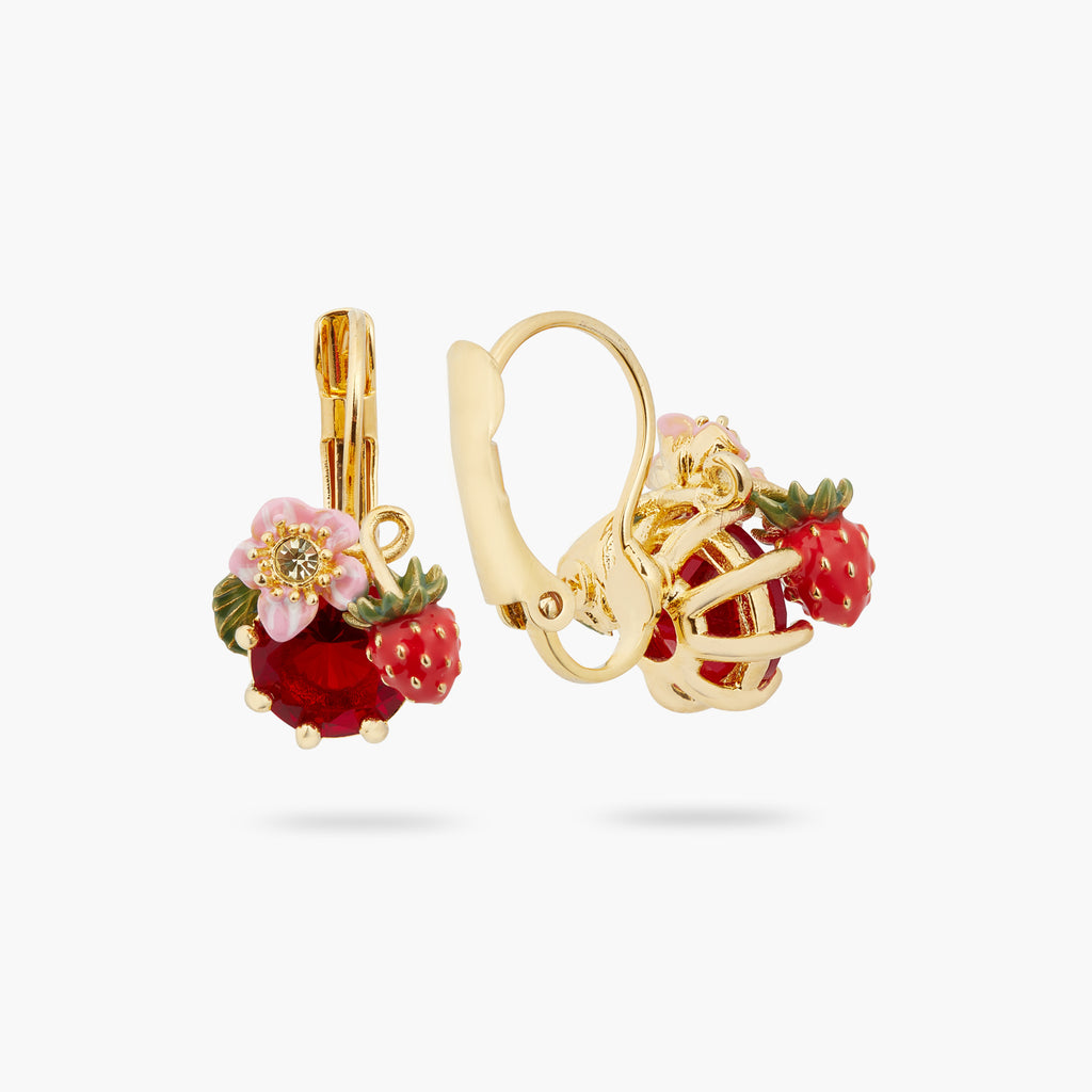 WILD STRAWBERRY & RED STONE SLEEPER EARRINGS