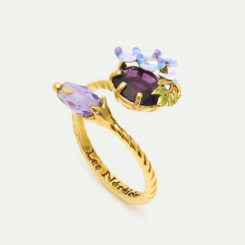 ADJUSTABLE RING W/ROUND STONE, WISTERIA & PURPLE CRYSTAL