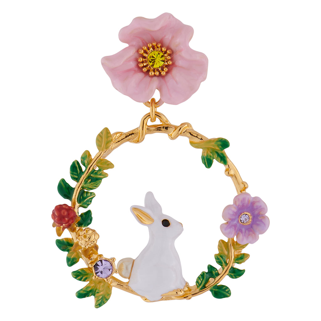 RABBIT ON FLOWERED BRANCH STUD CREOLES