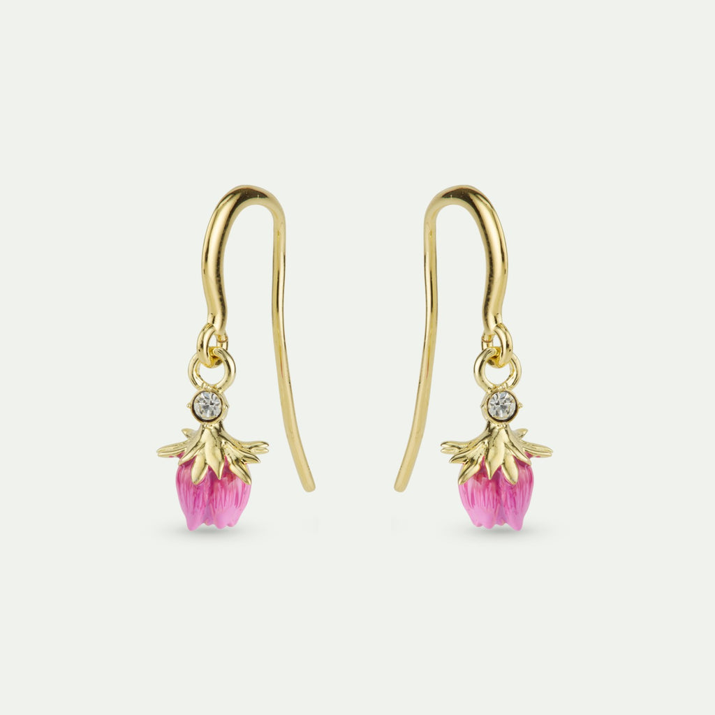 DANGLING ROSEBUD HOOK EARRINGS WITH A WHITE CRYSTAL