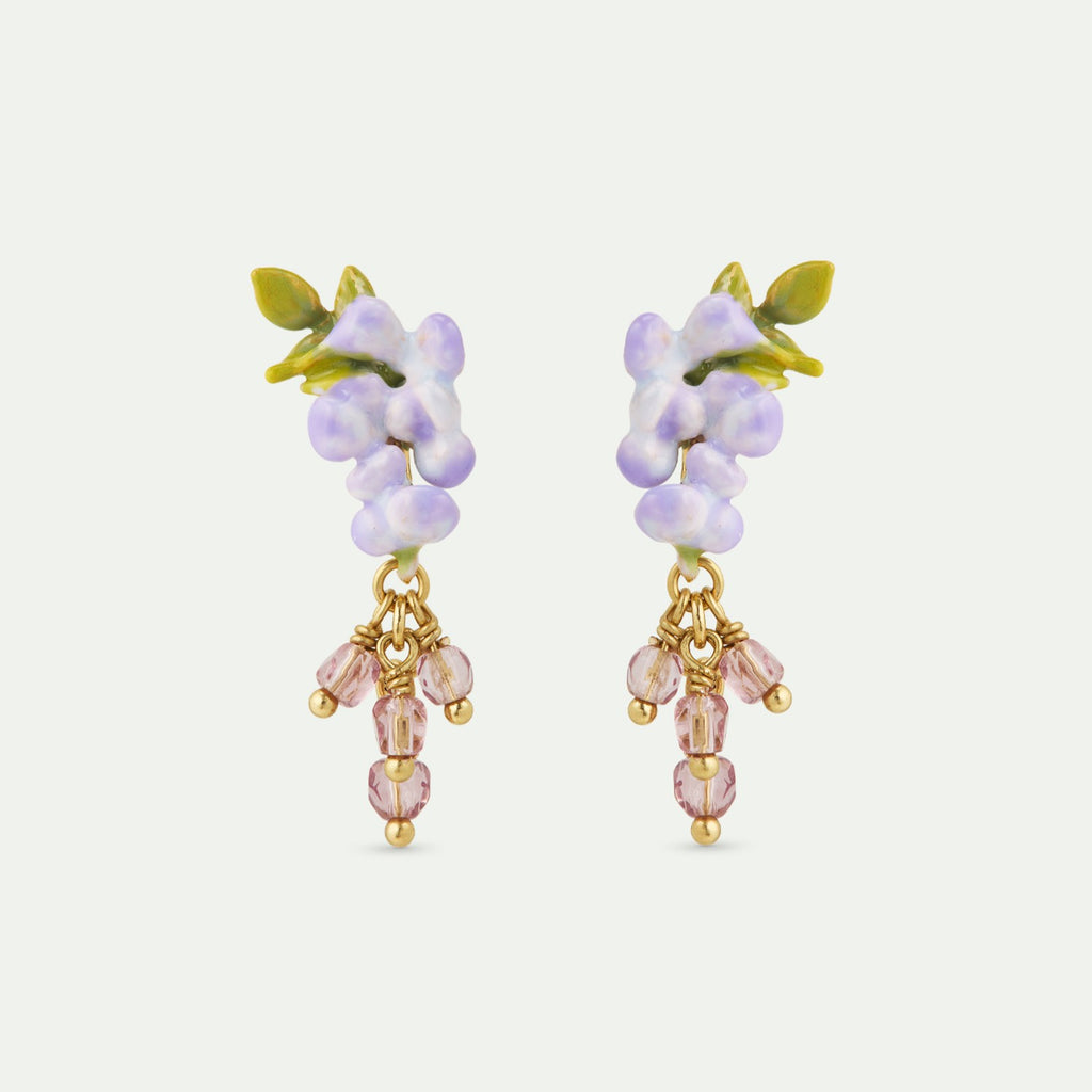 PURPLE WISTERIA, IVY & FACETED CRYSTAL BEAD DANGLE EARRINGS