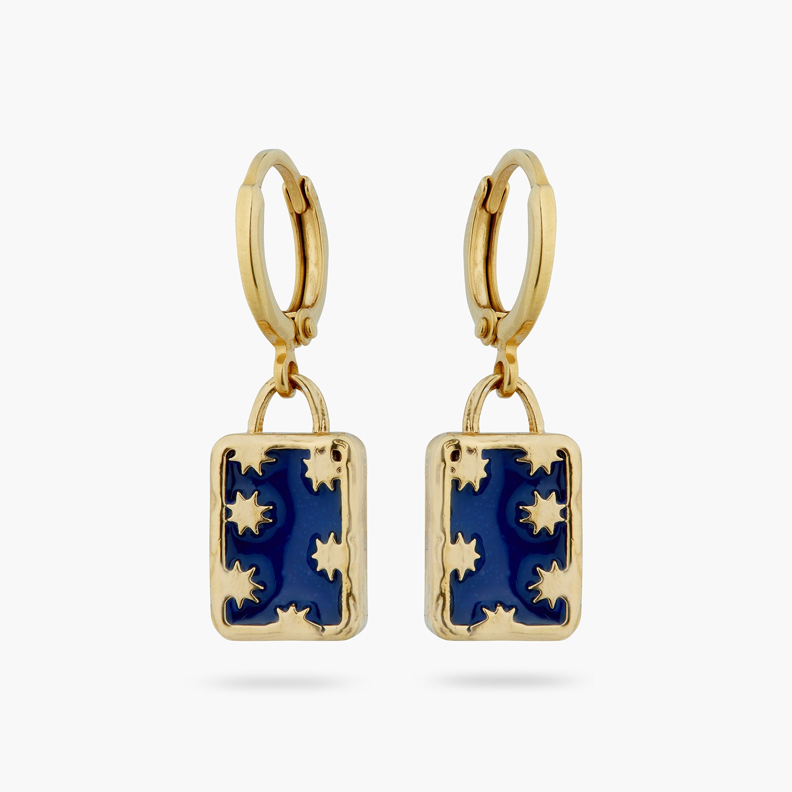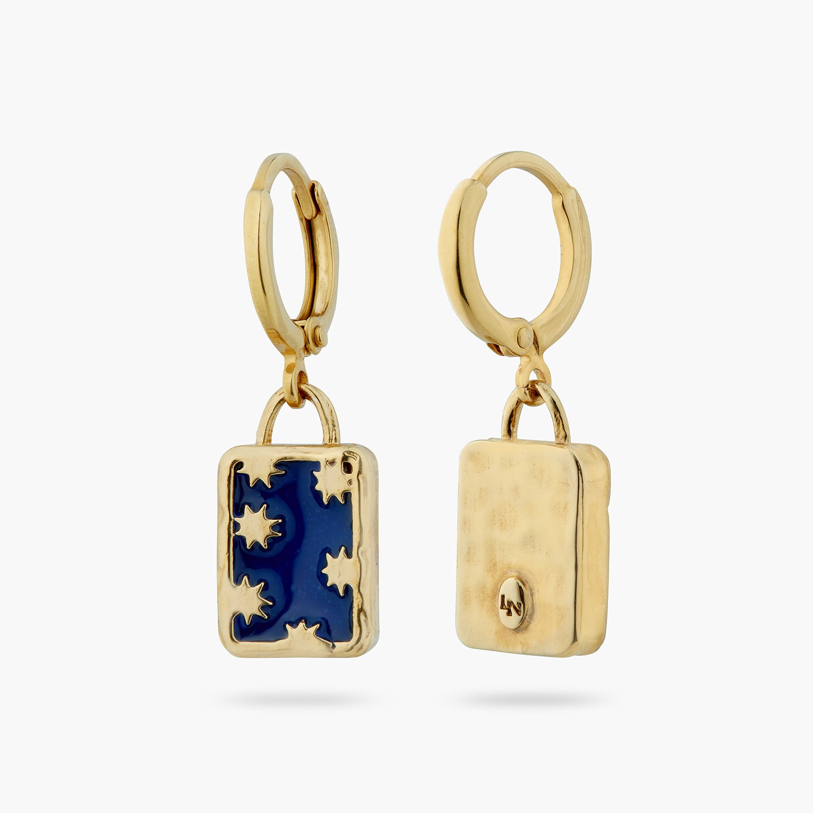 Post earrings, lion of Saint Mark inspired golden stars with a blue background.