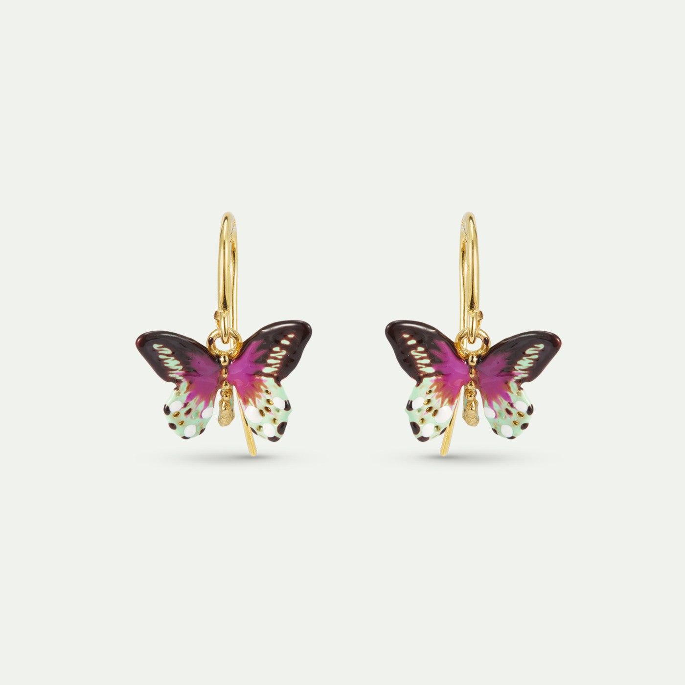 Multicoloured butterfly dangling hook earrings, delicately hand-painted.